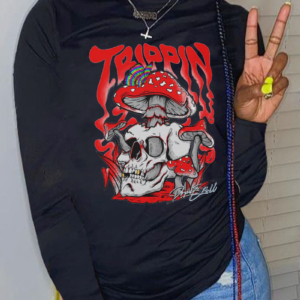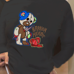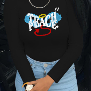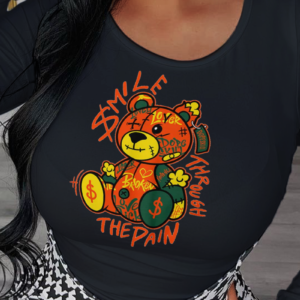 • Black Vintage Cute Print Patchwork O Neck Tops