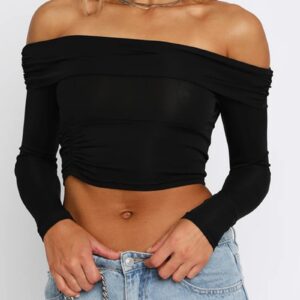 • Black Casual Solid Patchwork Off the Shoulder Tops
