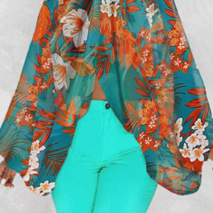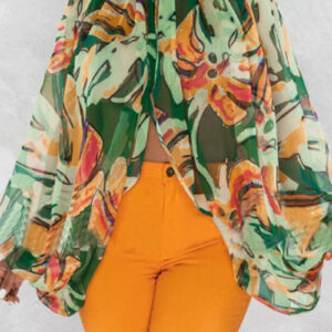 • Green Casual Print Patchwork Slit Half A Turtleneck Tops