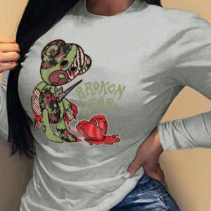 Grey Vintage Cute Print Patchwork O Neck Tops