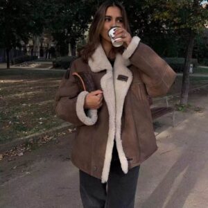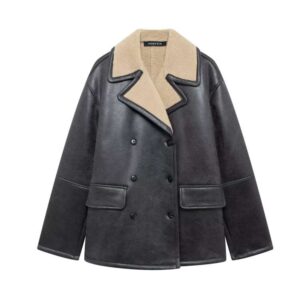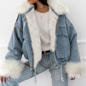 Casual Denim Fake Fur Patchwork Loose Short Coats
