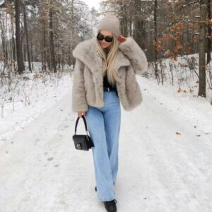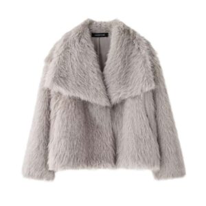 Fluffy Fake Fur Lapel Long Sleeve Short Coats