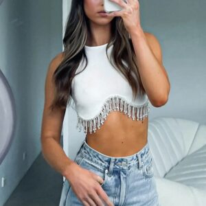 Designer Khaki Pockets Halter Cropped Tank Tops Women