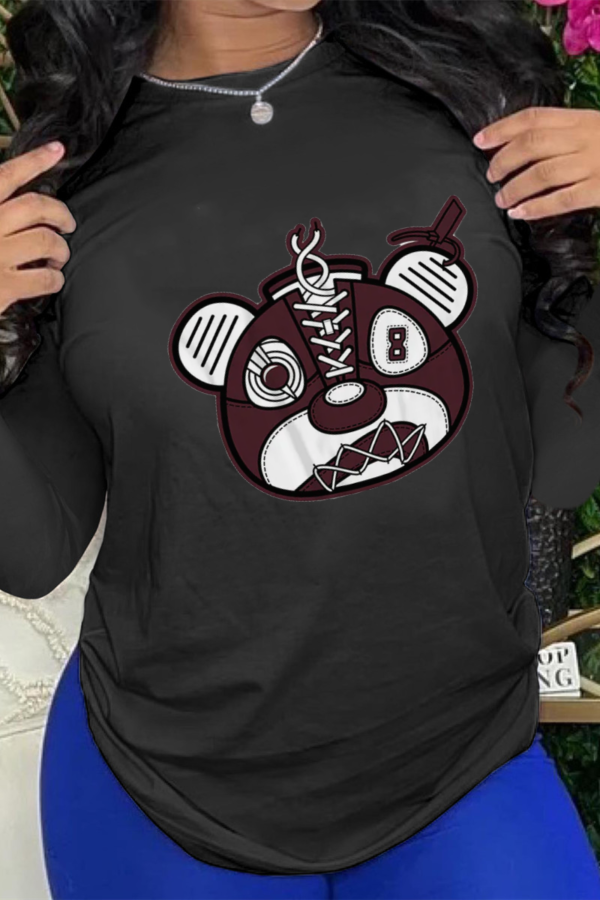 • Black Casual Daily Print Patchwork O Neck Tops