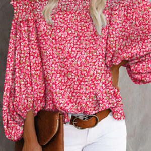 • Red Casual Print Patchwork Off the Shoulder Tops