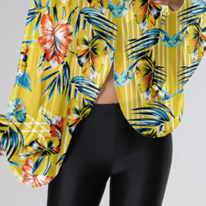 • Yellow Casual Print Slit Turtleneck Tops
