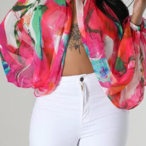 • Rose Red Casual Print Patchwork Slit Half A Turtleneck Tops