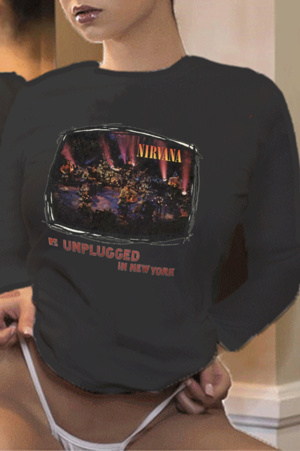 Black Street Vintage Print Patchwork O Neck Tops
