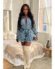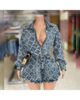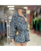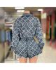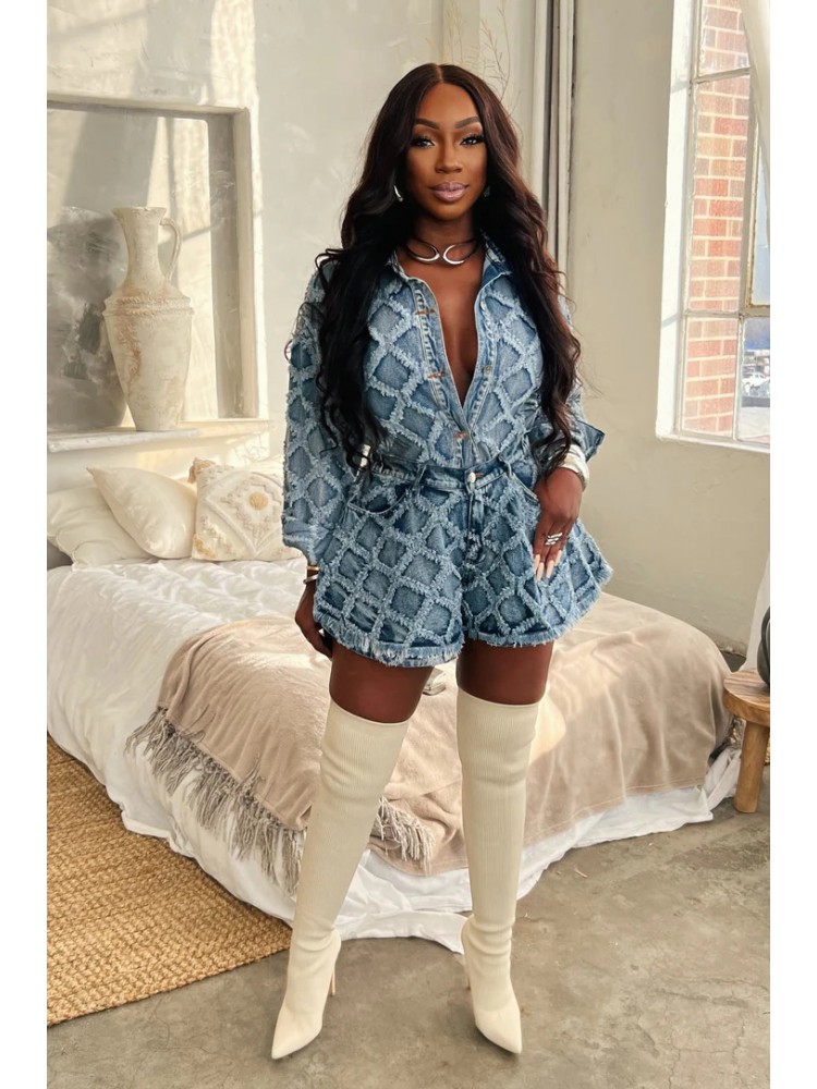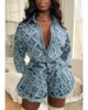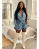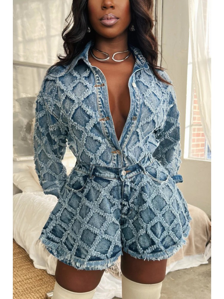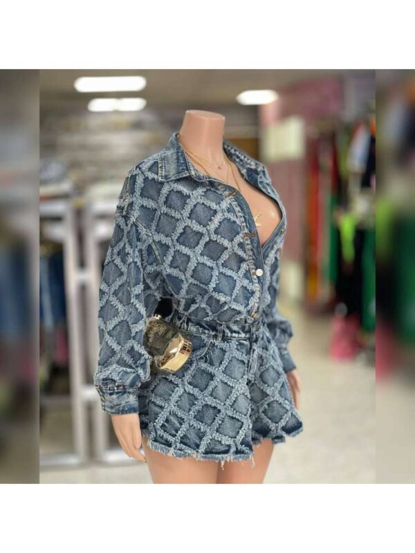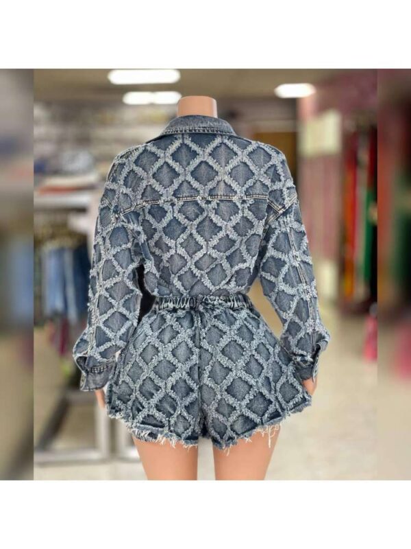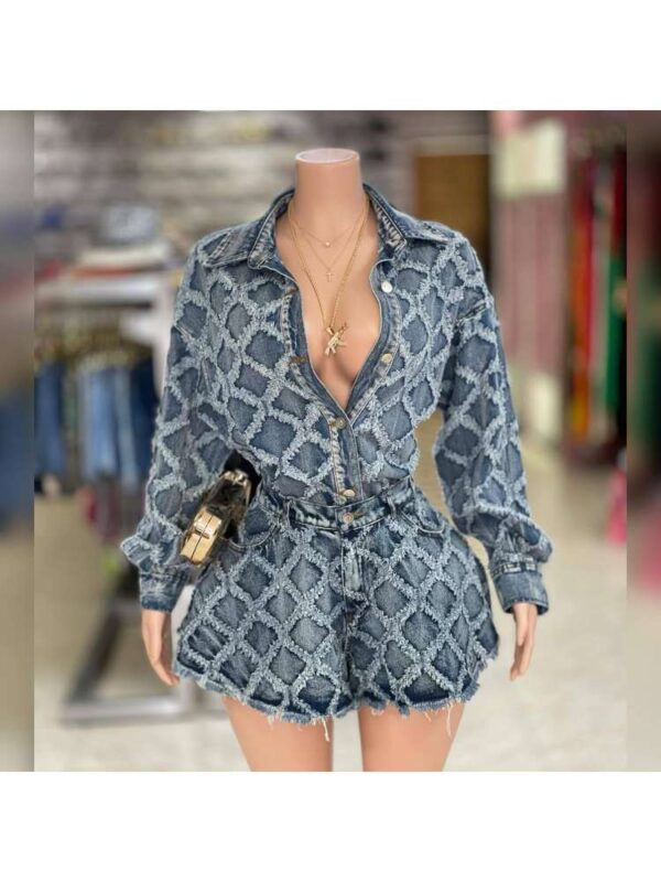 Denim Rhombic Fuzzy Trim Shirt Short Sets