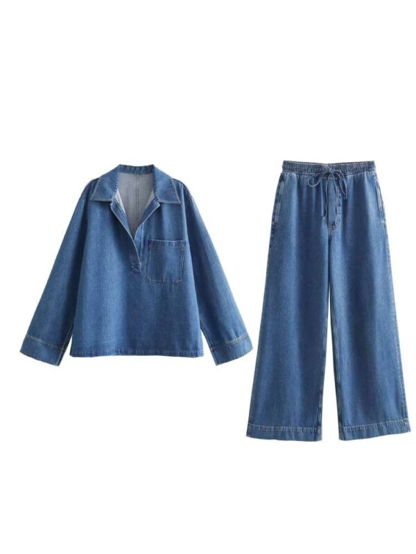Discover the perfect blend of style and comfort with the Denim V Neck Collar Loose Wide Leg Pant Sets, designed to bring out a woman’s vibrant charm. Made from high-quality Denim, this set offers a soft, flexible, and cozy fit. The premium fabric ensures lasting comfort while maintaining a chic, fashionable look. Affordable and stylish, this popular wholesale set is crafted with attention to design and detail—perfect for your boutique shelves update!