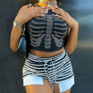 • Hot Drilling Skeleton Black Crew Neck Cropped Tank Tops