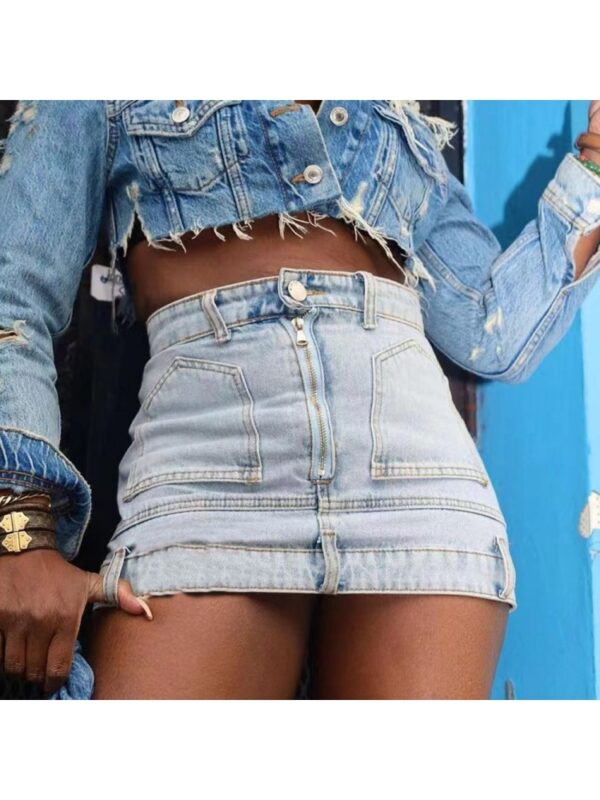 • Sweet Cool Pure Color Zipper Denim Skirt