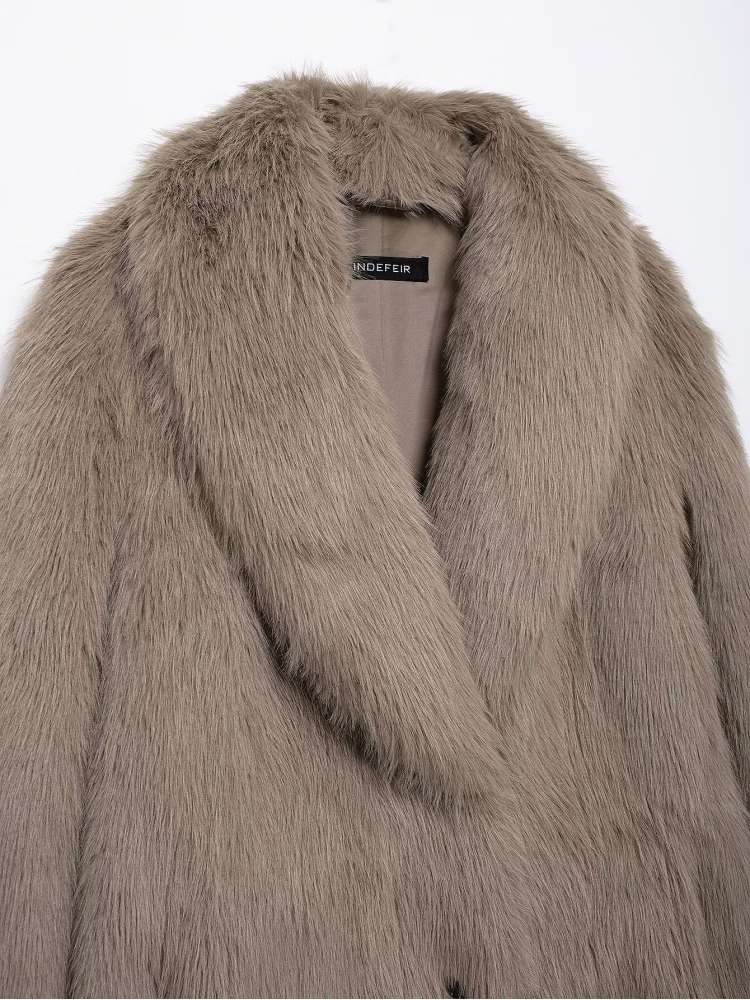 Fluffy Lapel Long Sleeve Fitted Long Coats