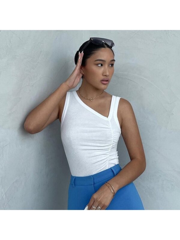 Inclined Neck Ruched Sleeveless Tank Tops For Women