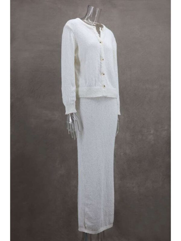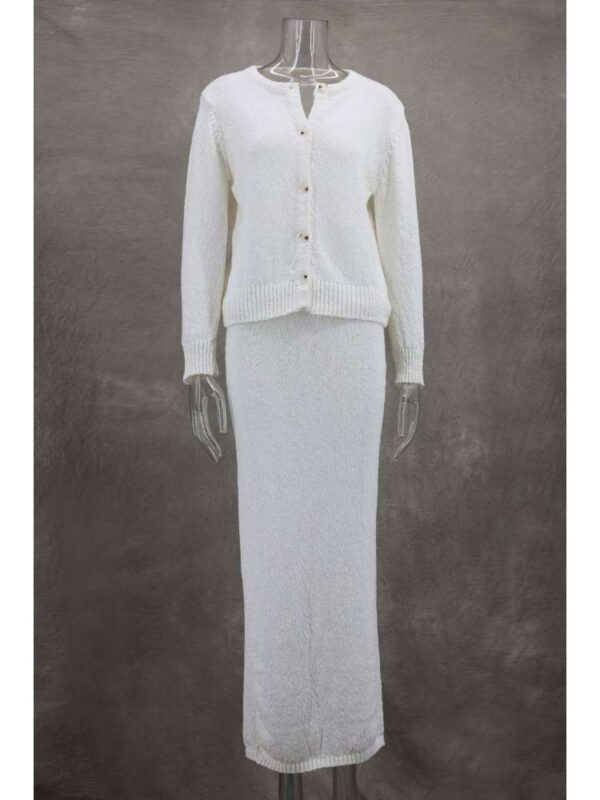 This Knitted Buckle Cropped Cardigan Skirt Sets is a must-have for any modern wardrobe! Crafted from high-quality textured Knitting, Terylene, Polyester and designed with comfort and style in mind, this piece offers a relaxed yet chic look. Crafted with soft, breathable and unique Patchwork,Pure Color,Solid Color, it ensures all-day ease while keeping you fashionable. Available in White, this affordable Skirt Sets is perfect for staying on-trend without breaking the bank. Whether you’re shopping, traveling, on a date, or enjoying a casual day at the beach, this Co-ords combines comfort, elegance, and affordability in one versatile piece. Stock up on this timeless piece today at Wholesale7.net and offer your customers the perfect combination of style and value.