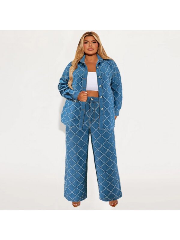 Discover the epitome of casual chic with our Women’s Co-ords Pant Sets, exclusively at Wholesale7.net. This trendy set in a stunning blue hue is designed for the fashion-forward woman. Available in sizes XL to 5XL, it features unique elements like patchwork, rhombus lattice, and a rugged hem, making it a high-demand item in retail.