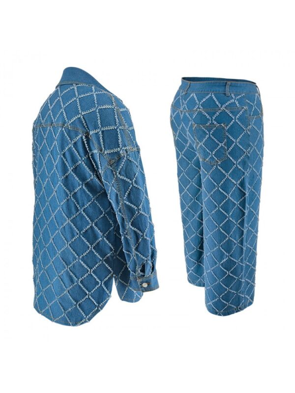 Crafted from premium cotton and denim, this set offers a relaxed fit with a shirt collar and long sleeves, perfect for autumn and winter. The high-rise waistline and button-up detail add a touch of elegance, while the fringe and cardigan style ensure a laid-back vibe.