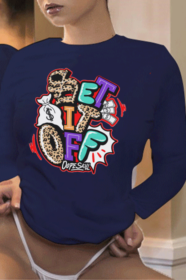 HomeLONGSLEEVENavy Blue Casual Daily Print Patchwork O Neck Tops