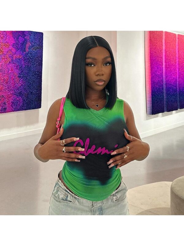HomeTOPNew Arrival Green Printed Sleeveless Tank Tops