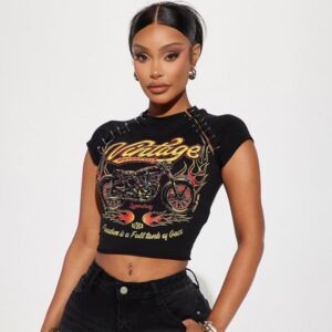 • Pin Graphic Sexy Street Black Crop T Shirts $40.00