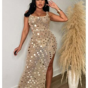 • Sexy Sequins Cutout Sleeveless Slit Maxi Dress