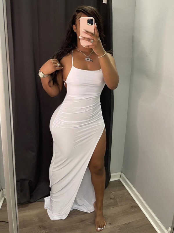 HomeDRESSSexy Pure Backless Lace Up Maxi Dress