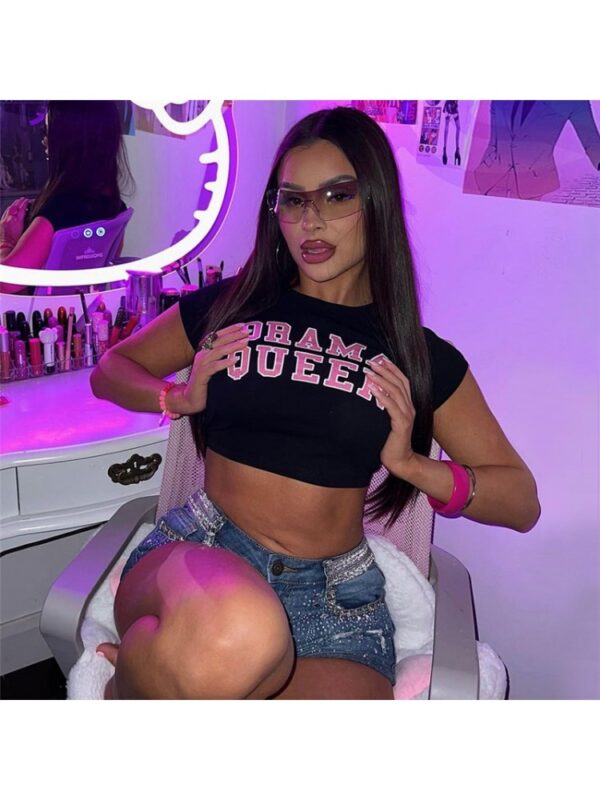 HomeTOPSexy Street Printed Black Crop T Shirts