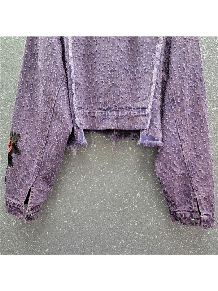 This Stereo Flower Raged Hem Denim Cropped Jackets is a must-have for any modern wardrobe! Crafted from high-quality textured Denim and designed with comfort and style in mind, this piece offers a relaxed yet chic look. Crafted with soft, breathable and unique Colorblock,Flower,Flower Decor, it ensures all-day ease while keeping you fashionable. Available in Purple, this affordable Jackets is perfect for staying on-trend without breaking the bank. Whether you’re shopping, traveling, on a date, or enjoying a casual day at the beach, this Outerwear combines comfort, elegance, and affordability in one versatile piece. Stock up on this timeless piece today at Wholesale7.net and offer your customers the perfect combination of style and value.