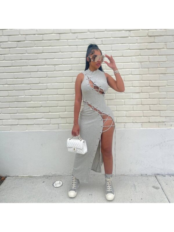 Summer Sexy Hollowed Out Patchwork Gray Sleeveless Dress