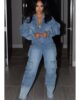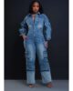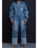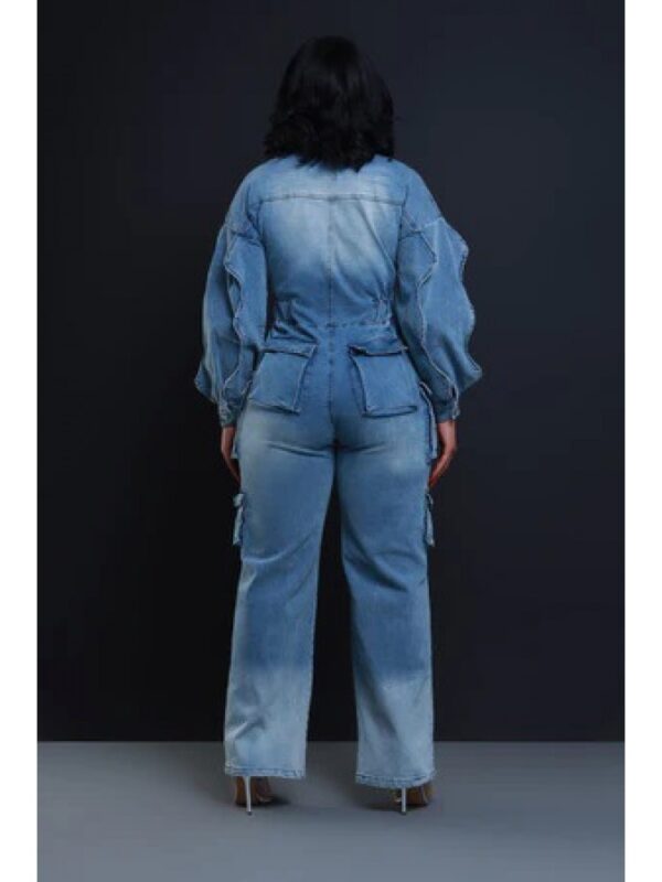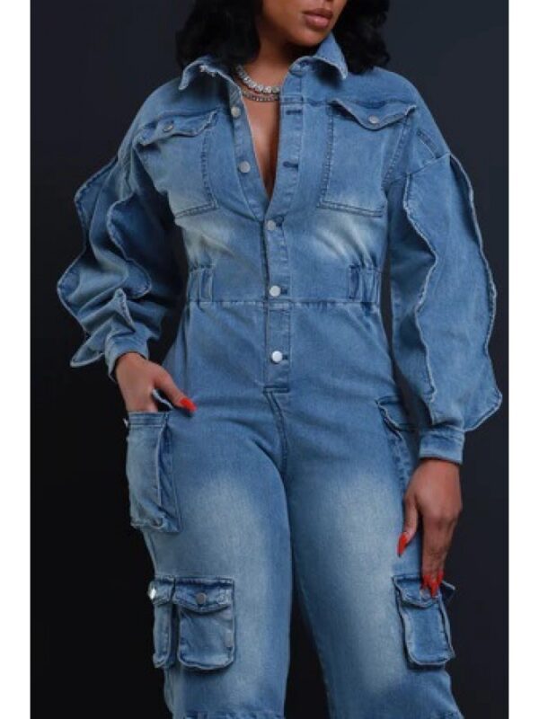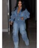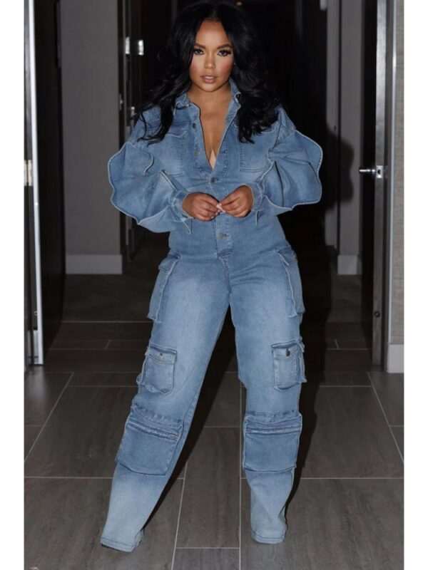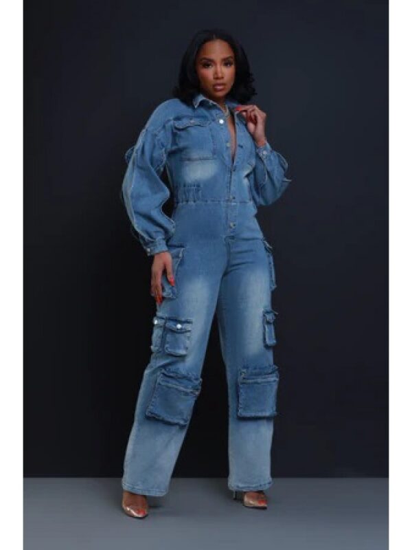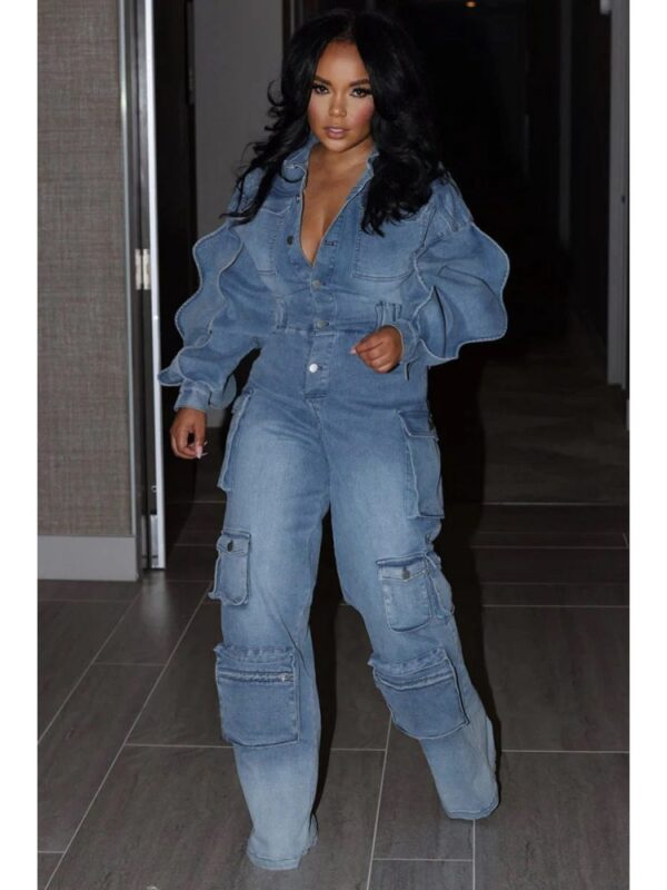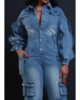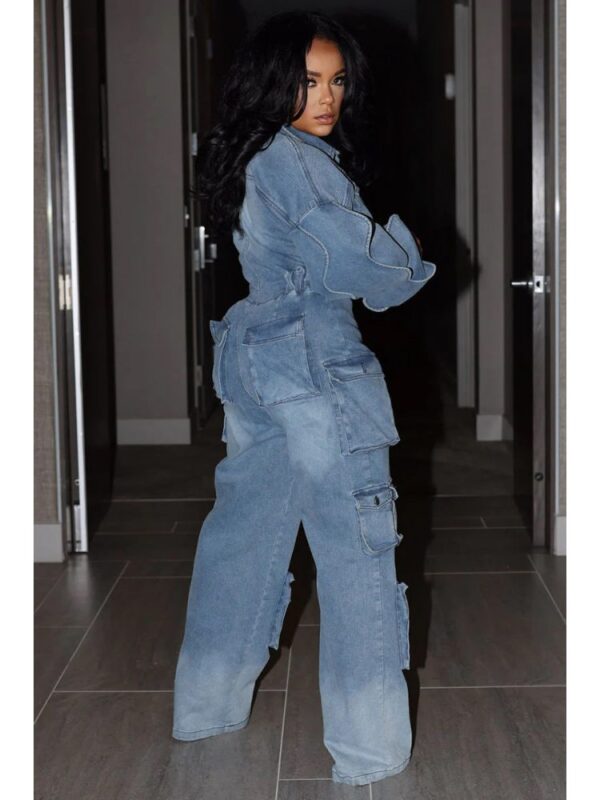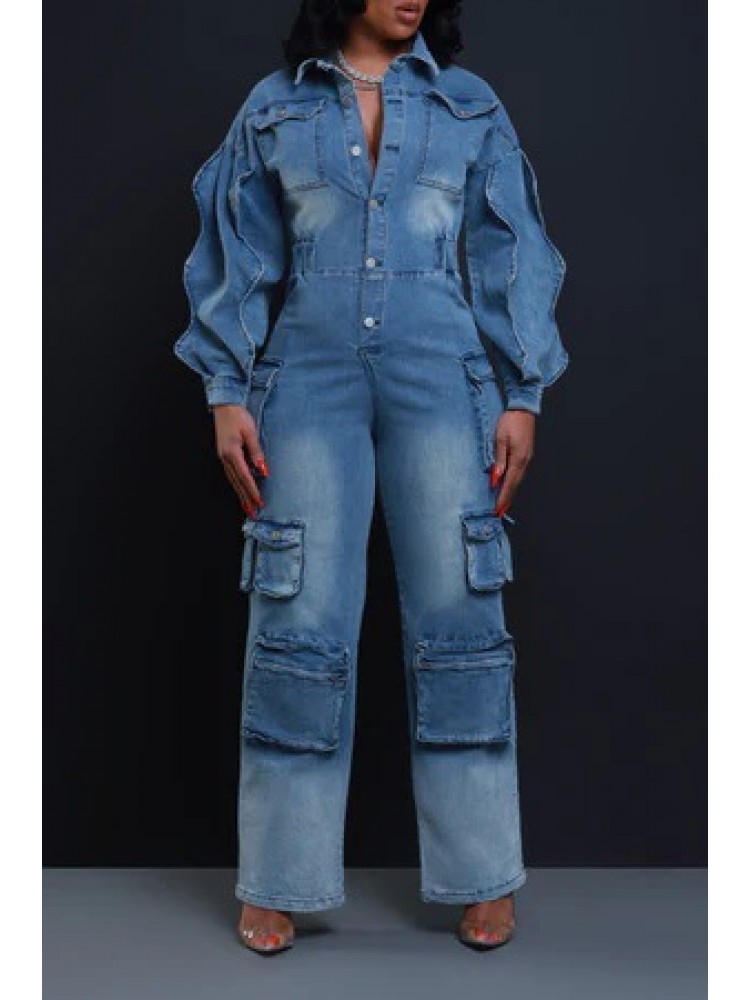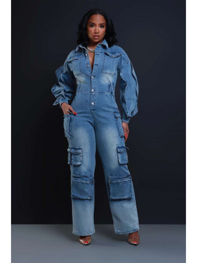 Washed Denim Multi Pocket Cargo Jumpsuits