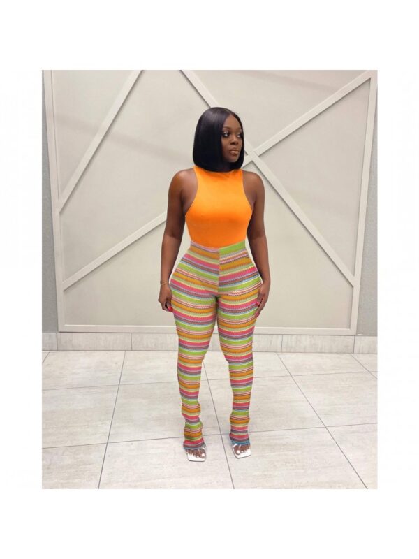 Women’s Contrast Color Jacquard Knitted Flared Pants