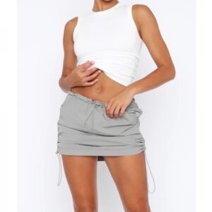 • Summer Women Drawstring Loose Midi Cargo Skirts