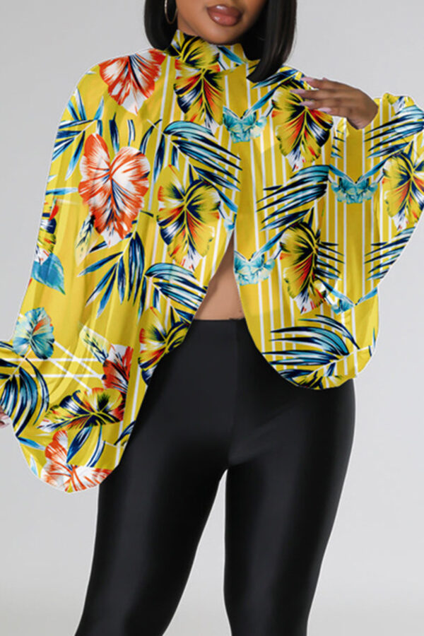 HomeLONGSLEEVEYellow Casual Print Slit Turtleneck Tops